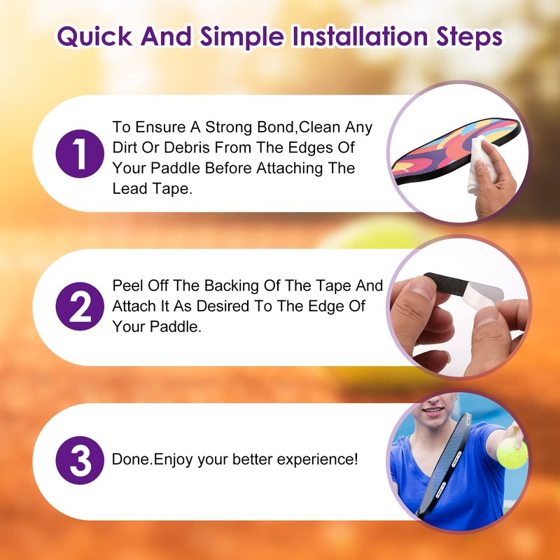 - Highly adhesive strips: Our lead tape features highly adhesive glue that won't fall off even when you hit the ball hard. It's also flexible, making it easy to apply to curved sections of the paddle edge.