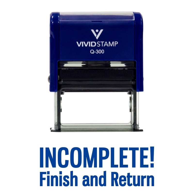 Incomplete Finish and Return Teacher Self Inking Rubber Stamp (Blue Ink) - Large 2 Pack