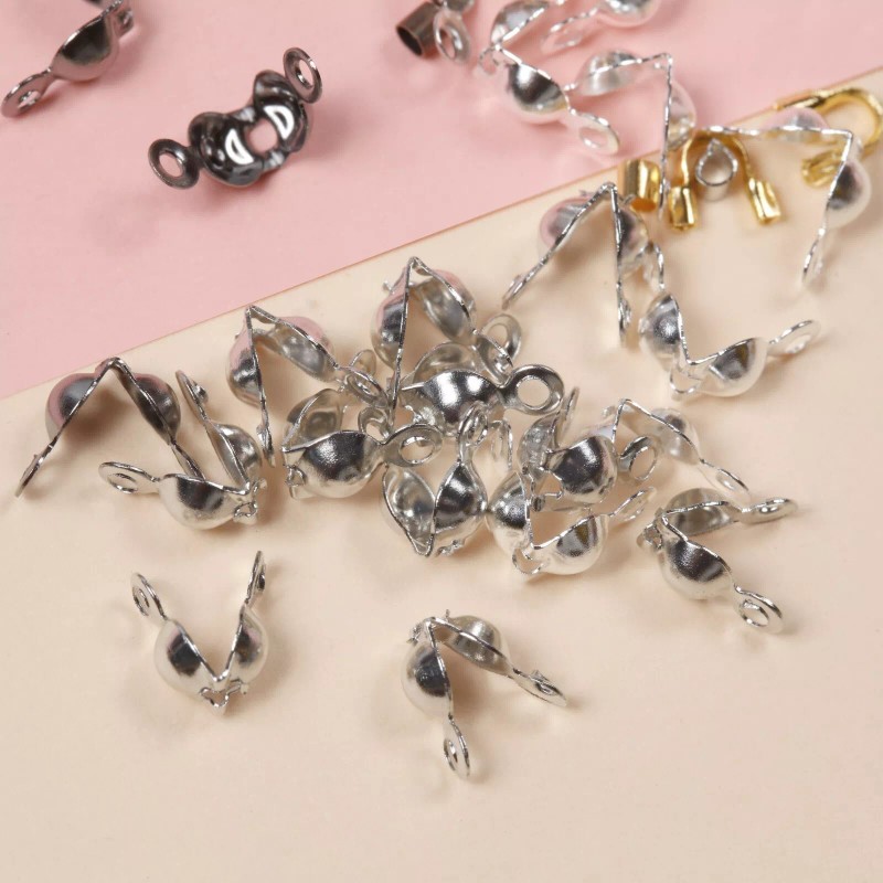 MULTIPLE USES: These crimp bead covers are used to hide the knots in string, leather, nylon string, thread, metal wire, suede, and other fibers. This crimp covers for jewelry making can be applied with jump ring, lobster clasp, earring hooks, beads, suitable for making earring, bracelets, necklaces, anklets and more