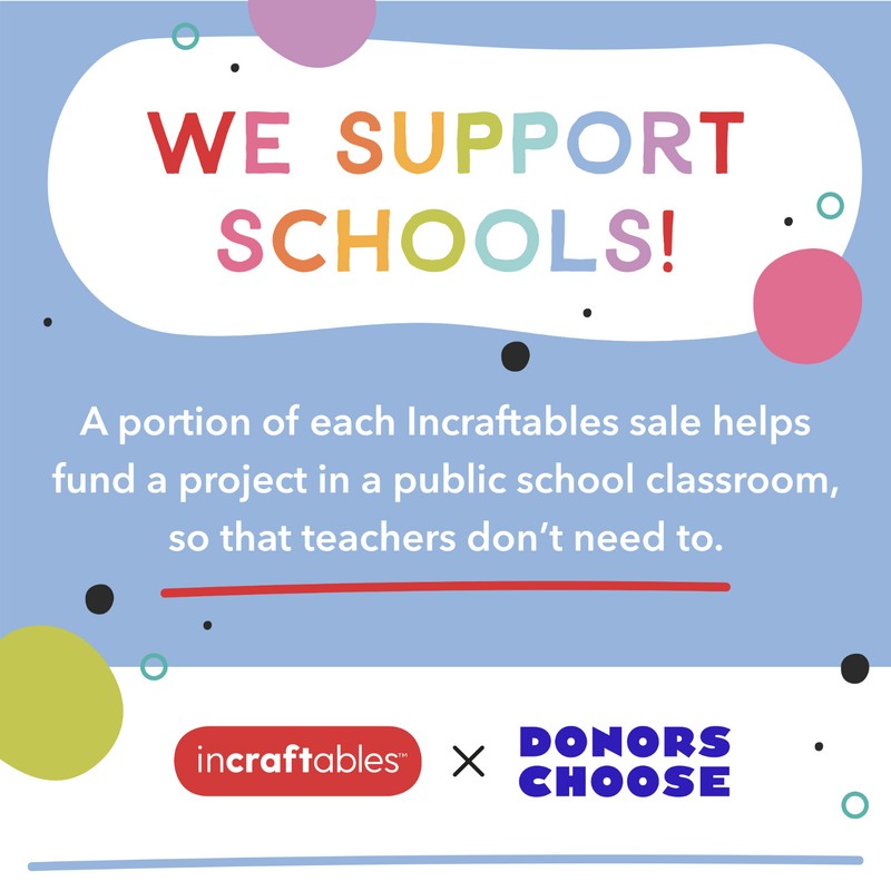FUNDING USA SCHOOLS: In partnership with the DonorsChoose, a leading education non-profit, a portion of every Incraftables sale goes towards much needed funding at USA public schools to donate arts & crafts supplies so that teachers don’t have to pay for them from their own pockets.