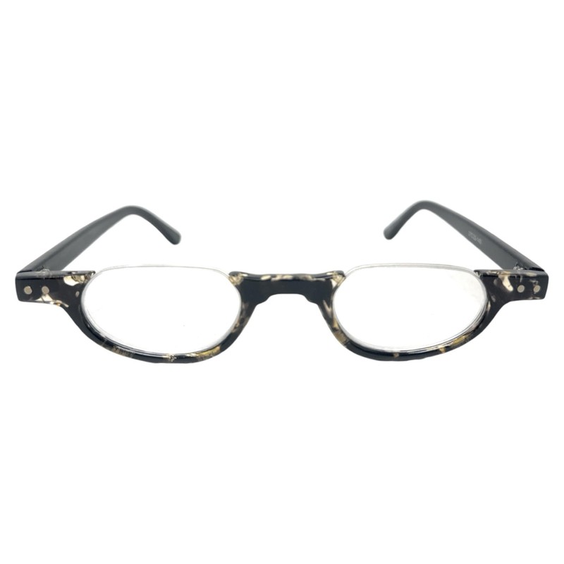 - Available Lens Magnification Strengths: 1.00, 1.25, 1.50, 1.75, 2.00, 2.25, 2.50, 2.75, 3.00, 3.25, 3.50. Available Colors: Tortoise, Black and Tan Tortoise, Black and Tortoise, Brown Stripe, Red Stripe, Pink Blue Stripe, Orange Green Purple Stripe and Brown Zig Zag Stripe. PLASTIC FRAME: This men and women frame features a round half frame style. ACRYLIC LENSES: These fully magnified lenses (NOT bifocals) have lightweight, plastic lenses. Includes a free microfiber cleaning carrying case.