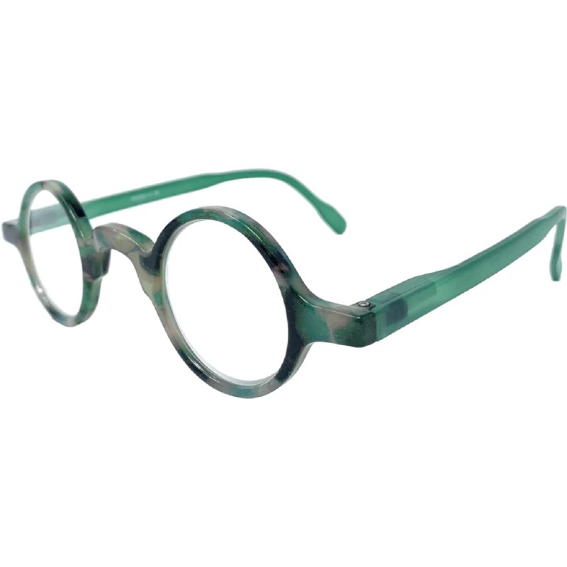 - These round, circle glasses are small in size. These small, round reading glasses will look stylish on both men and women. This style features a plastic frame, fully magnified lenses, and is available in classic tortoise color options. Scratch Resistant Optical Quality Lenses.
