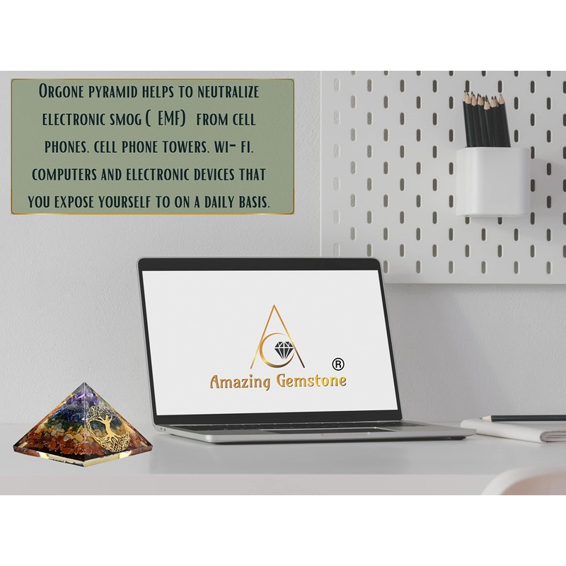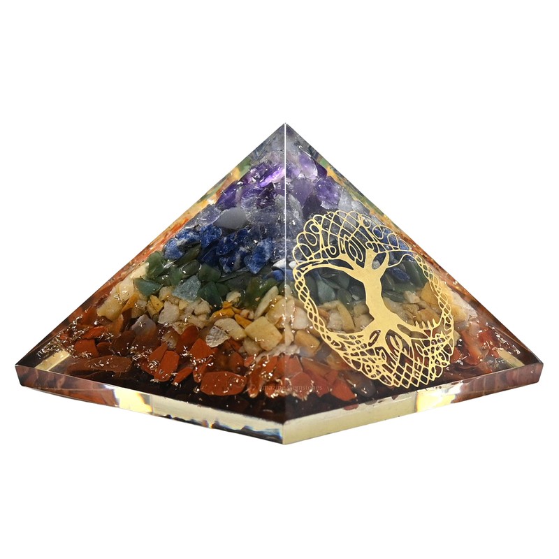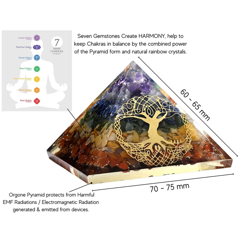 Incredible Gemstone Orgone Pyramid | Natural Seven Chakra Pyramid Crystal | Orgonite Pyramid | Healing by Positive Energy of Organ Pyramids (Tree of Life (Big))