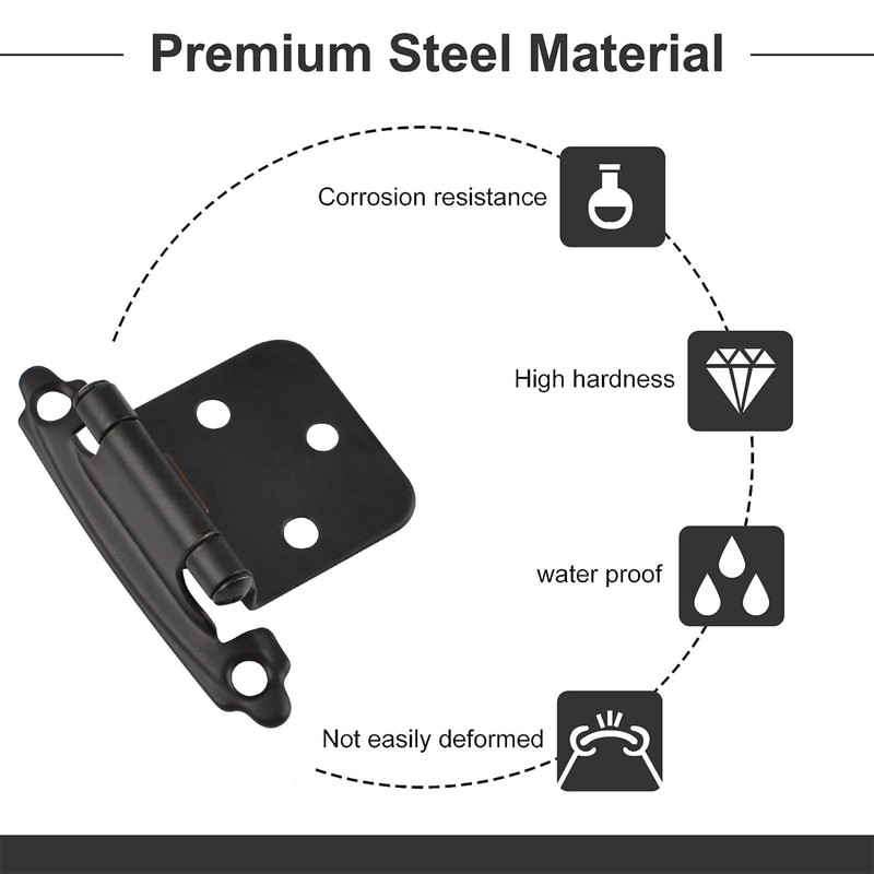 INCREWAY 1 Pairs Overlay Cabinet Hinge with Screws, Self-Closing Decorative,Face Mount, for Variable Overlay Kitchen Cabinet Doors(Black)