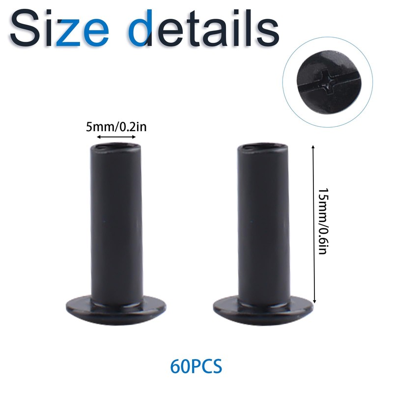 - 【60 SETS】 -- The screw post is composed of screw and top, they are matchable. Total 120 pcs. Thread Size: 5 x 15mm/0.2" x 0.59"(D*L).