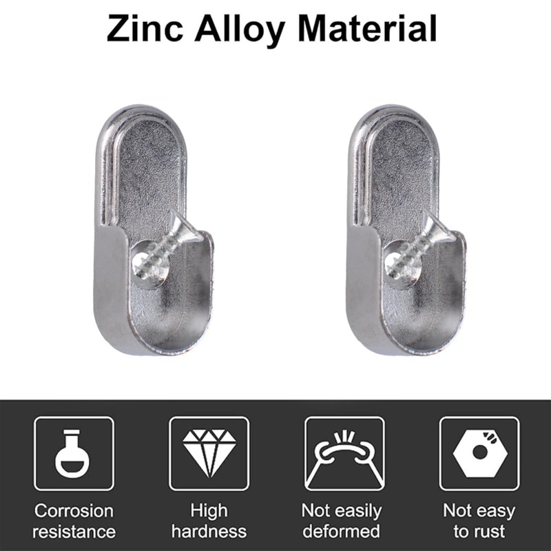 - What You Get--You will get 6 pieces of oval closet rod supports, which contains 6 screws, and the quantity is sufficient to meet your daily use and replacement.