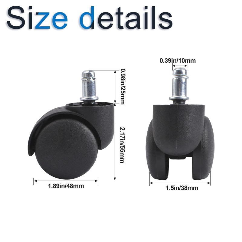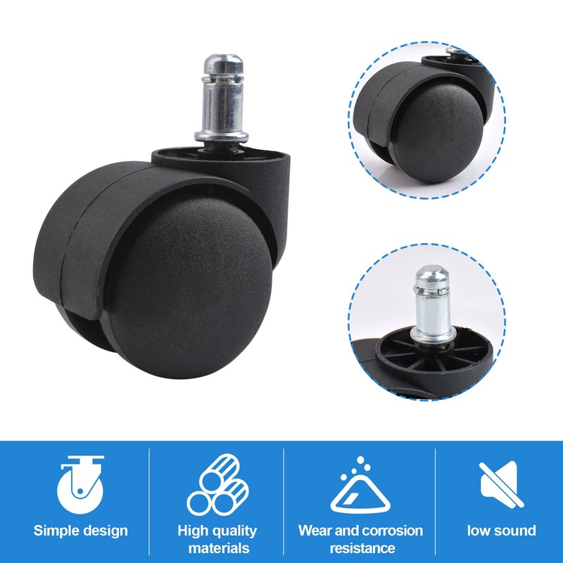 - 【Easy to Install & No Tools Required】Pull out your old office chair casters and push in your new wheels until stem is firmly seated and secure.
