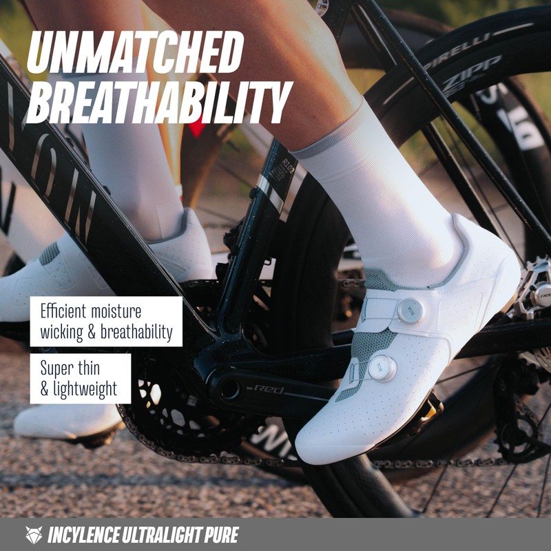 INCYLENCE Men's Road Bike Socks, Ultra Thin Cycling Socks with Light Compression, Breathable and Smooth Toe Seam, 1 Pair, White, 43 - 46