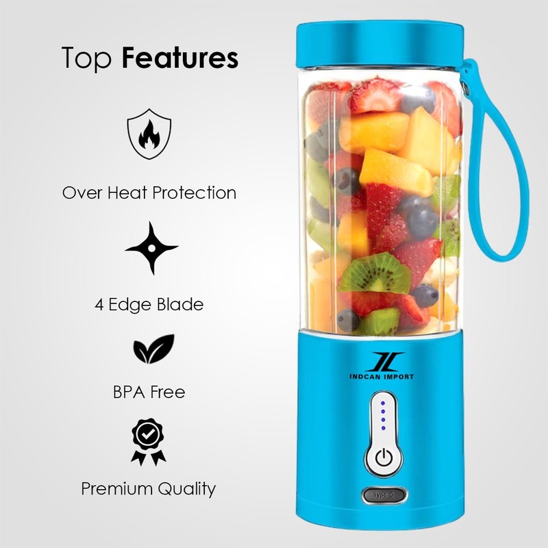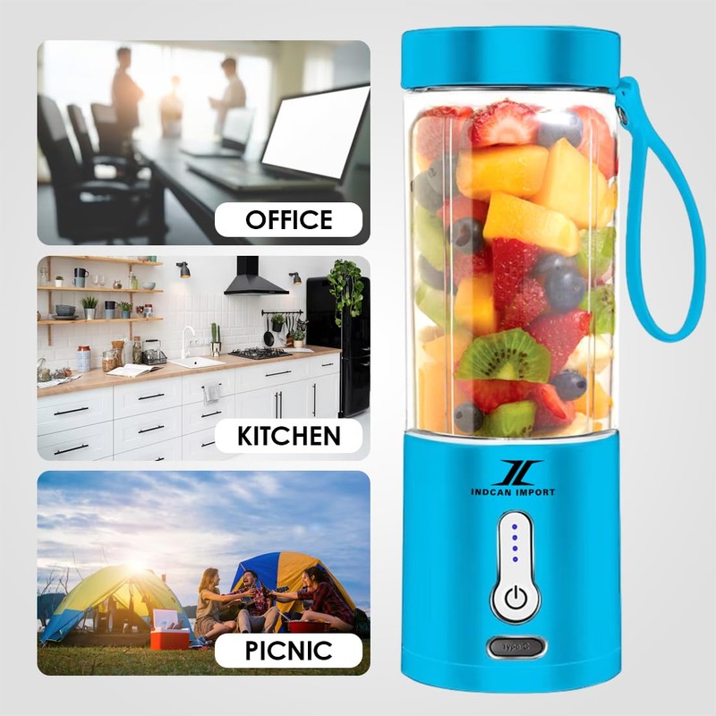 INDCAN IMPORT - Portable Juicer Blender | 6 Blades Personal Smoothie Maker | Travel Blender for Shakes, Juices & Baby Food | Mini Mixer for Home, Office, Gym & Outdoor – BPA-Free & Easy Clean.