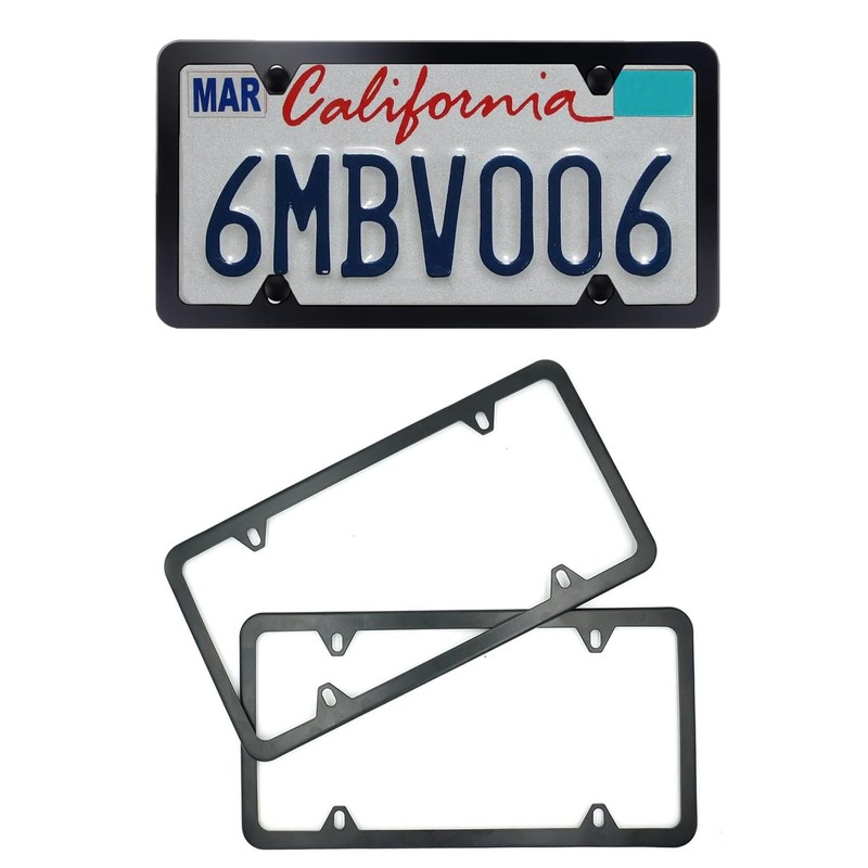 - New Slim Style Design. Will Not Block State Tags.4 Holes License Plate Frame Make your car more solid.