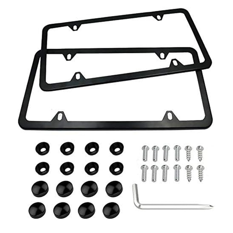 Indeed BUY License Plate Frames Black, Newest 2 Pcs 4 Holes Car Licenses Plate Covers Stainless Steel Holders Frame for Plates with Screw Caps.