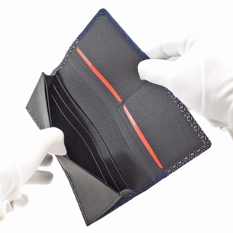Indenya 8211 Long Wallet, No Coin Purse, Thin Deer Leather Ihori, Gourd Pattern, Navy Blue Base x Black and White Lacquer, Navy, Black, White