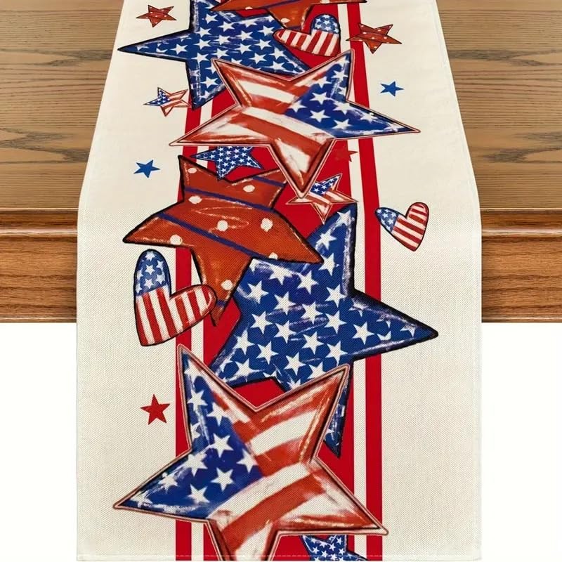 - Festive Design: Independence day heart star table runner features a charming design with classic 4th of July motifs such as star heart , instantly adding a festive touch to your dining table and creating a warm holiday atmosphere for family and guests.