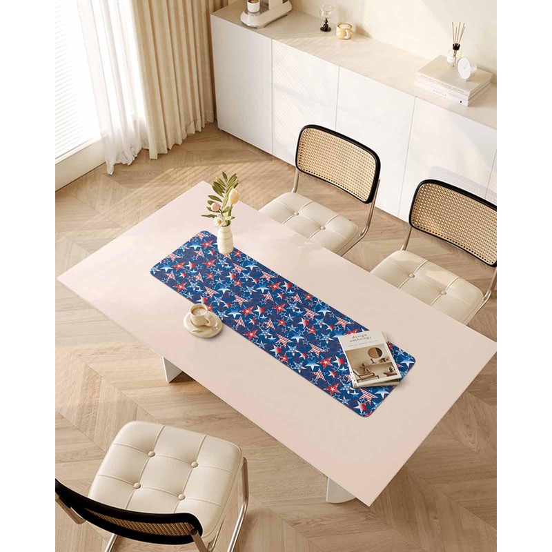 Independence Day Heat Insulation Trivet & Table Runner USA Flag Stars Gradient Dark Blue Background Hot Dishes Mat Table Protector Hot Pots Pans Pads Waterproof Placemats for Countertops 48x12 Inch