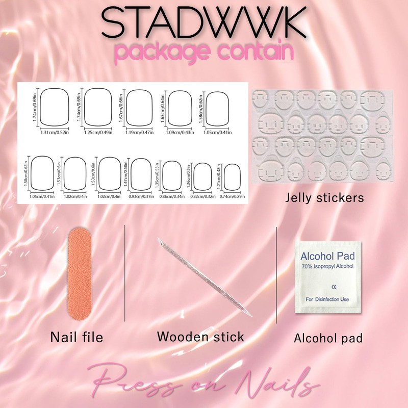 • Lasting effect:Artificial sitck on nails have been improved and upgraded many times, the thickness is moderate, comfortable to wear, if you want to wear a longer lasting effect, you can prepare your own glue, it can last 1-6 weeks.