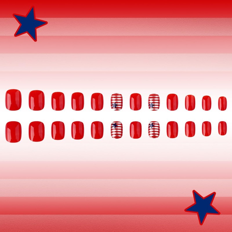 - Packaging Includes:You will receive 24 Independence Day stick on nails, 24 jelly glue, 1 small wooden stick, nail file. 4th of July fake nails requires no extra tools