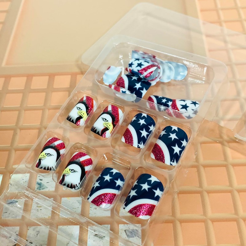Independence Day Press on Nails Square Short Length 24Pcs Glossy Acrylic Patr...