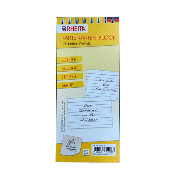 Index Card Pad Lined DIN A8 with 120 Cards 170 g/m² Ideal for School Education Leisure and Work