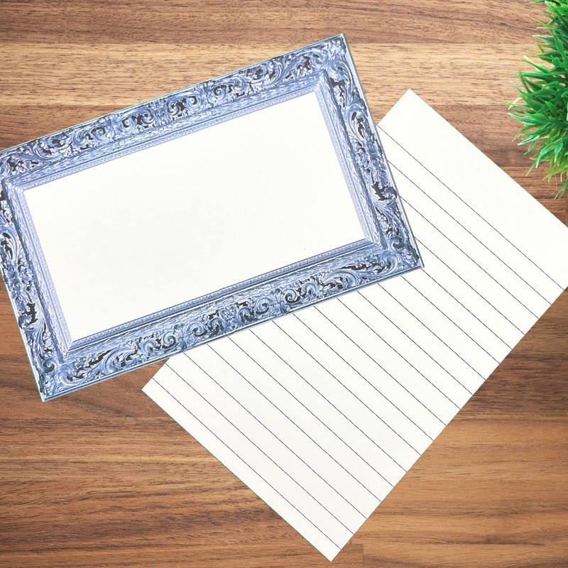 - Cute blue picture frame unruled design on the front and lined (ruled) on the back.