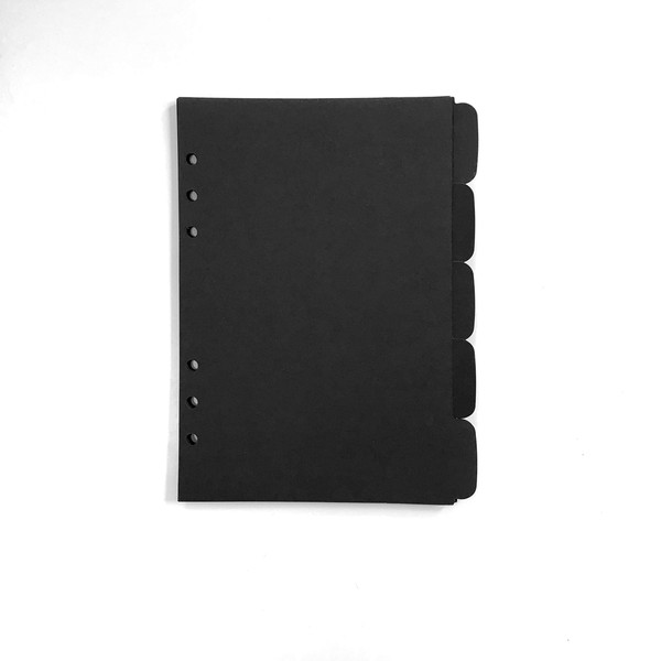 Index Tabs for A5/A6 6-Holes View Binder File Folder Loose Leaf Sheet Protectors Binder Cover Protector (Divider Horizontal Black Paper, A5/21cm*15cm)