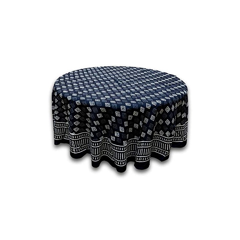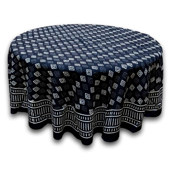 - DESIGN: A beautiful ronud tablecloth highlighting a spectacular Geometric design HAND BLOCK printed using DABU technique and flaunted by a fascinating border. This 100% cotton tablecloth is a perfect fit and a necessary essential to compliment the decor of your dining ensemble