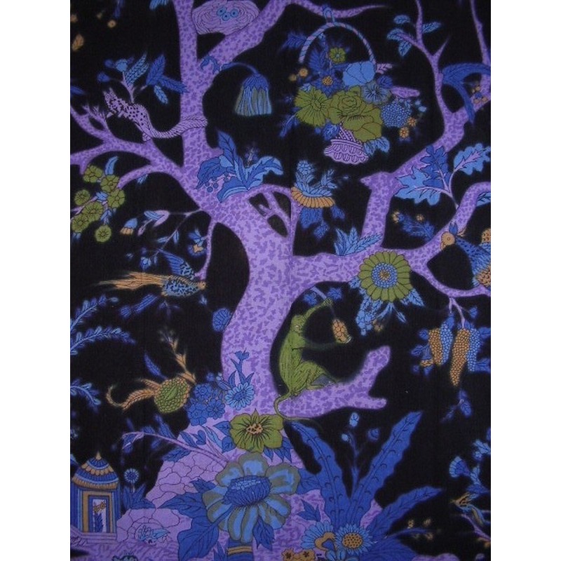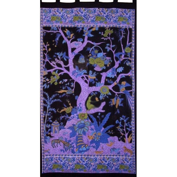 India Arts Tree of Life Tab Top Curtain Drape Panel Cotton 44" x 88" Purple Black