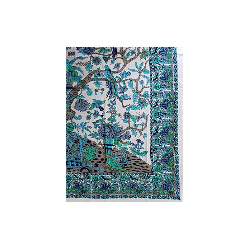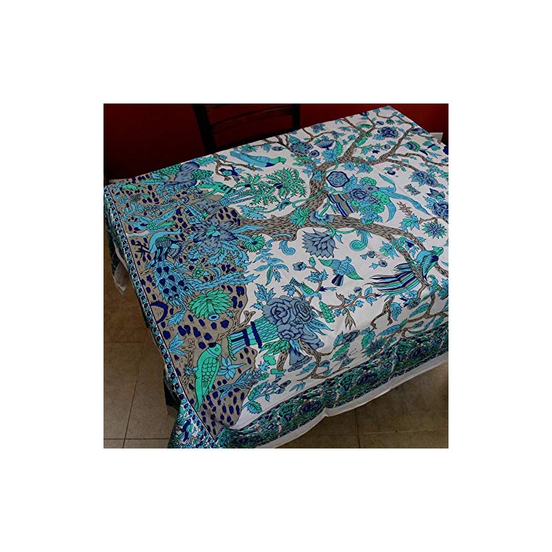 India Arts Tree of Life Tablecloth for Square Tables Cotton Floral Tablecloth Square (Blue Turquoise, 72 x 72 inches)