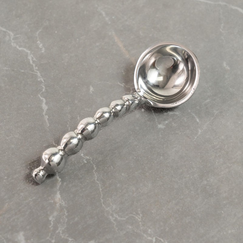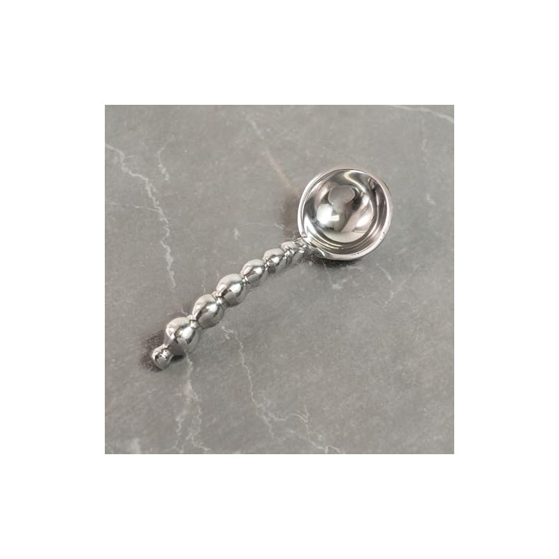 India Handicrafts 11578 Polished Silver Tone 6 inch Stainless Steel Serving Spice Spoon with Beaded Handle for Condiments, Candy, or Nuts