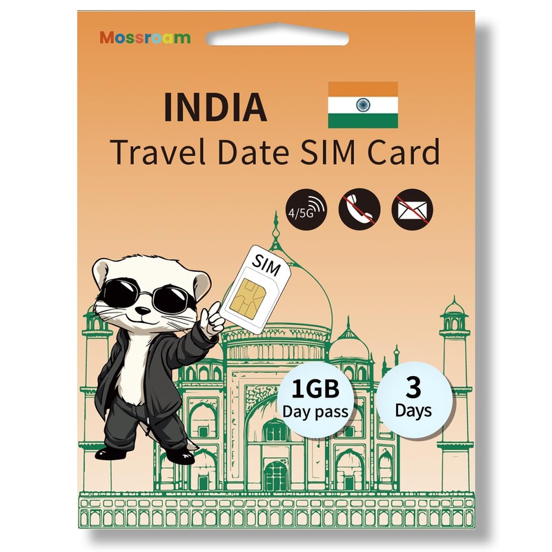 India Travel SIM Card - 5G/4G LTE High-Speed Data - Prepaid & No Roaming - 1GB for 3 Days - Easy Activation for Tourists & Business Travelers