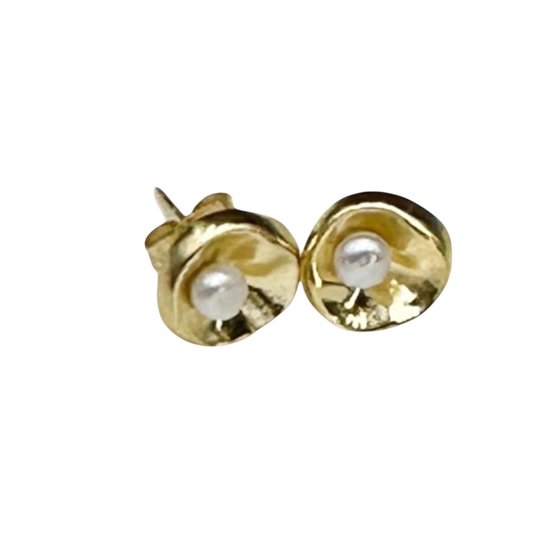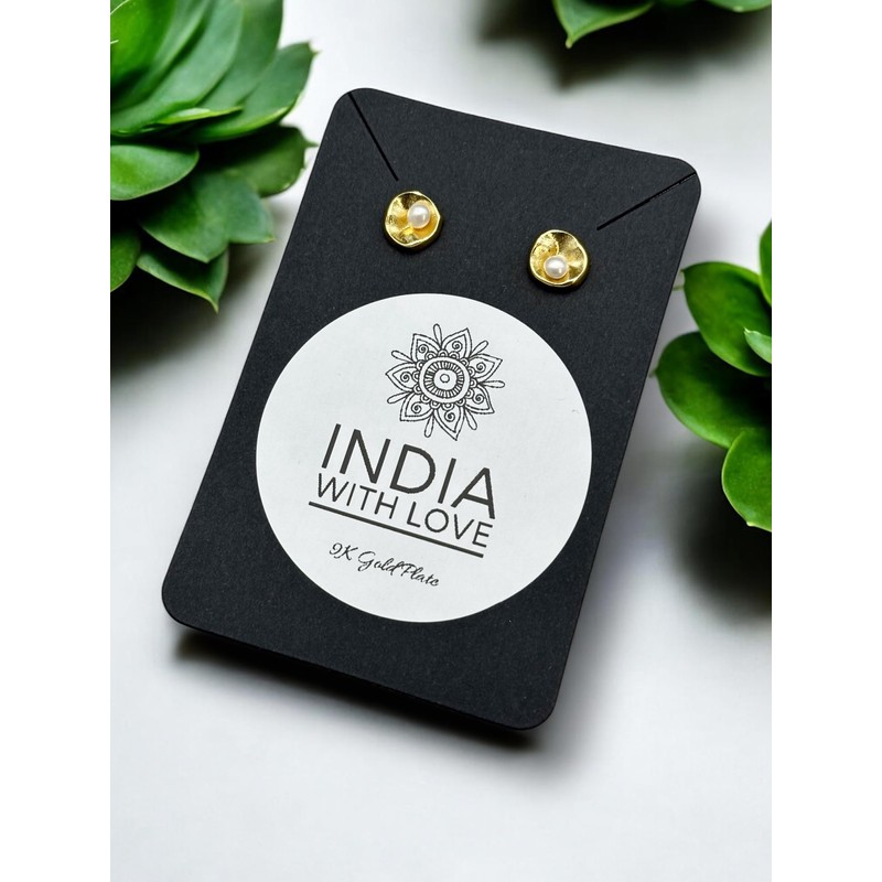 India with Love 9K Gold Pearl Stud Earrings, Delicate Classic Design