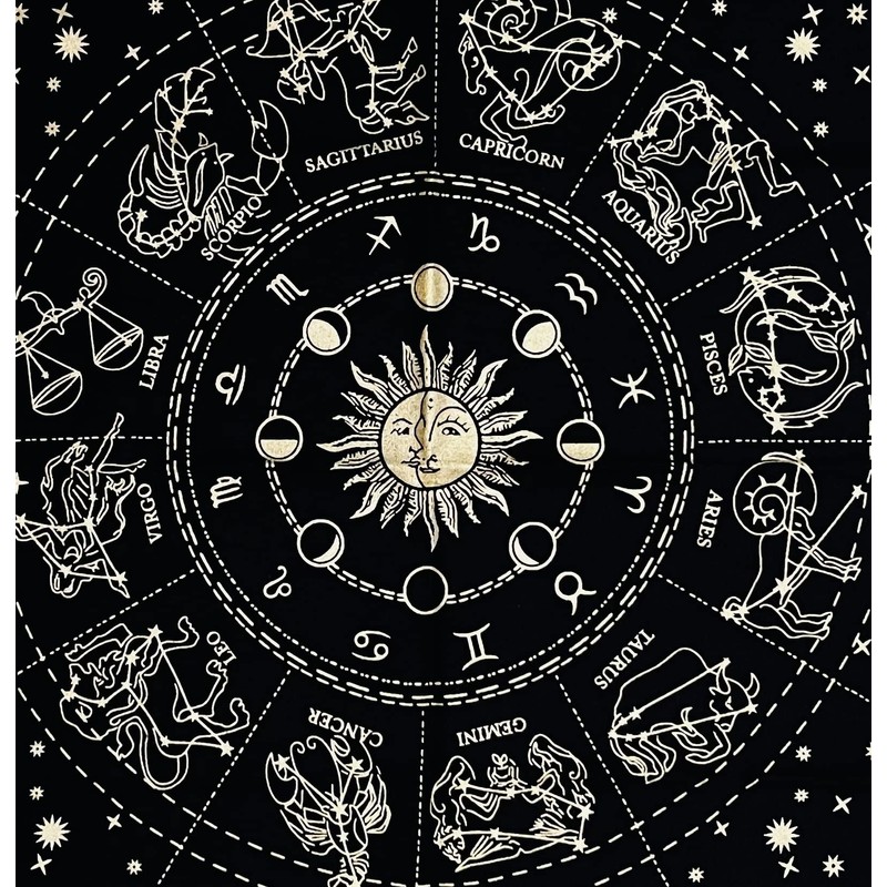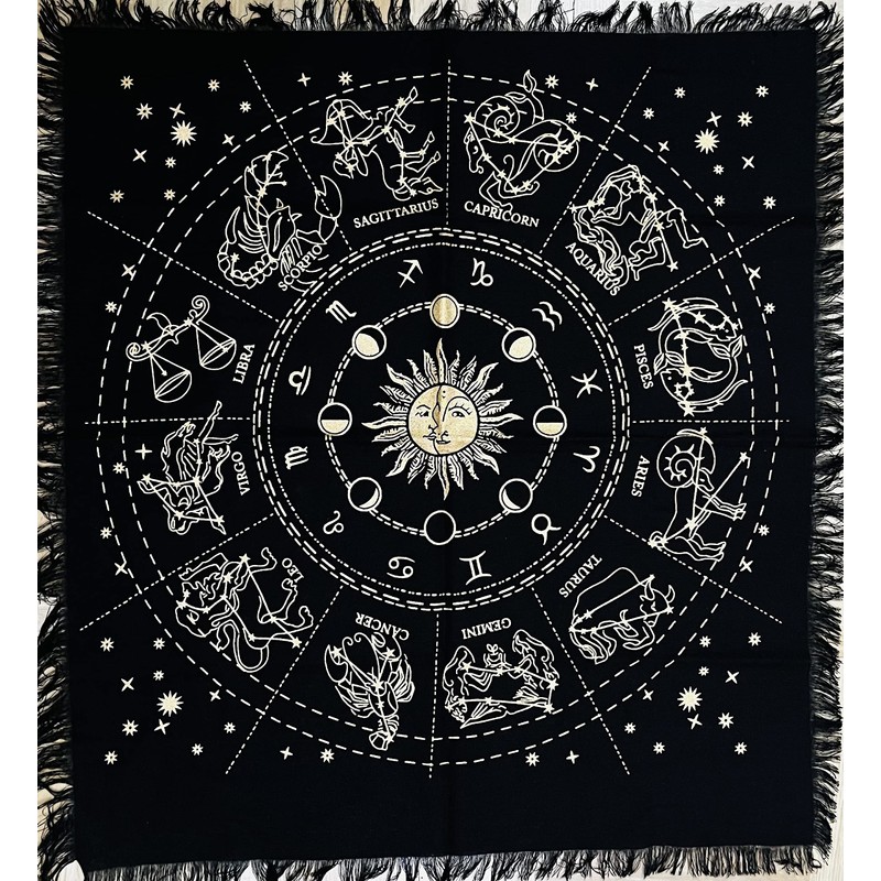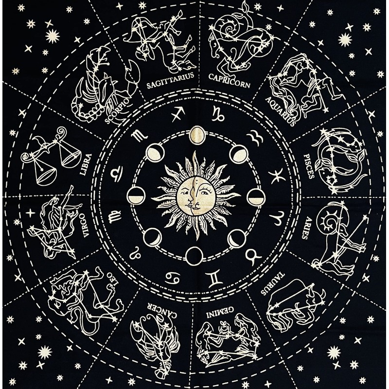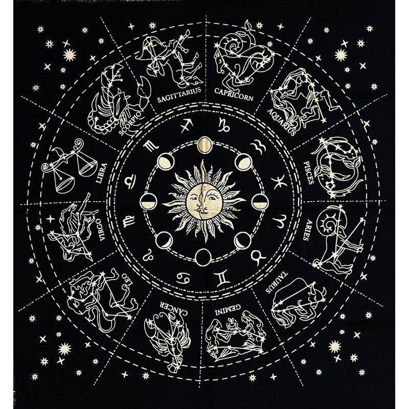Indian Consigners Gold Zodiac Altar Tarot Table Cloth Witchcraft Spread