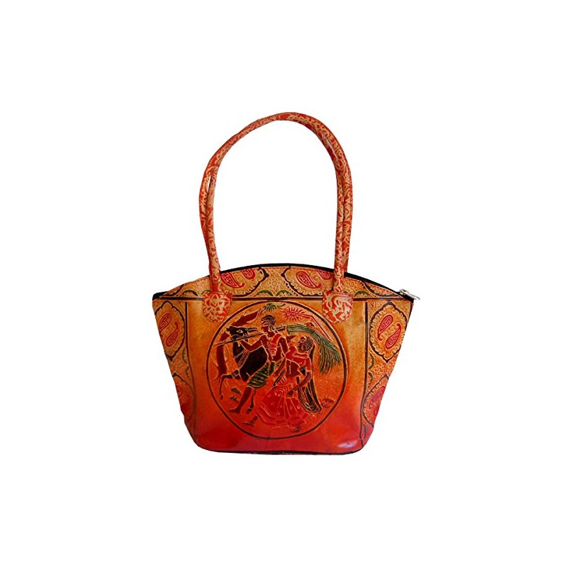 Indian Farmers Design Ethnic Hand Embossed Shantiniketan Leather Indian Hand Bag