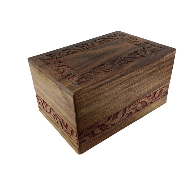 Indian Glance Wooden Urn Box - Urn for Human Ashes Funeral Cremation Urn with Hand Carved Design (X-Small)