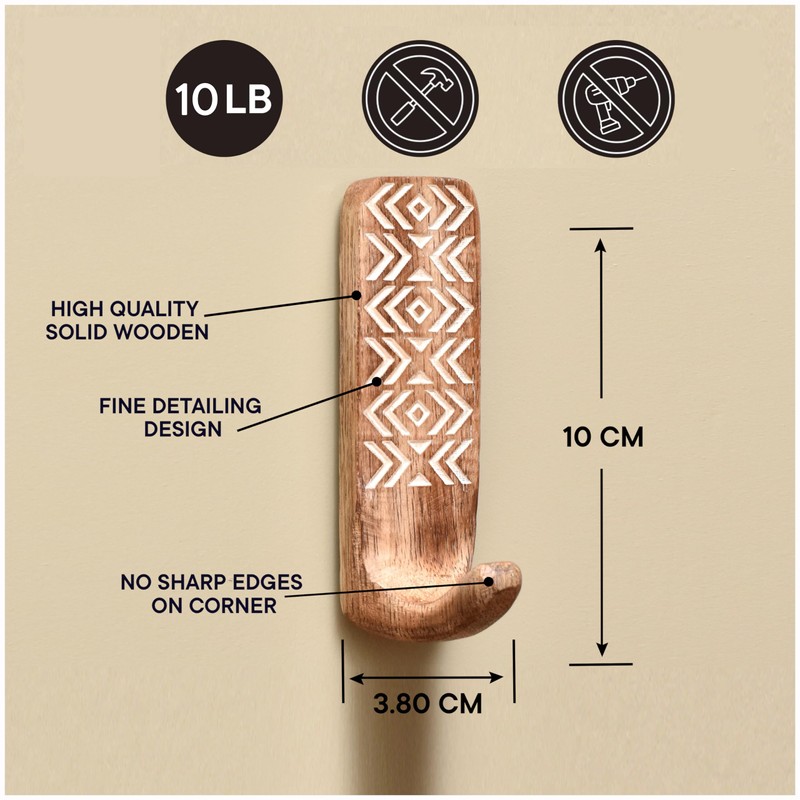 - Unique Design- The Eye-Catching Self Adhesive Hooks with a Handmade Wooden Boho Design are Perfect for Bringing Attention to Detail to the Living Room, Bedrooms, Kitchen and Bathroom.