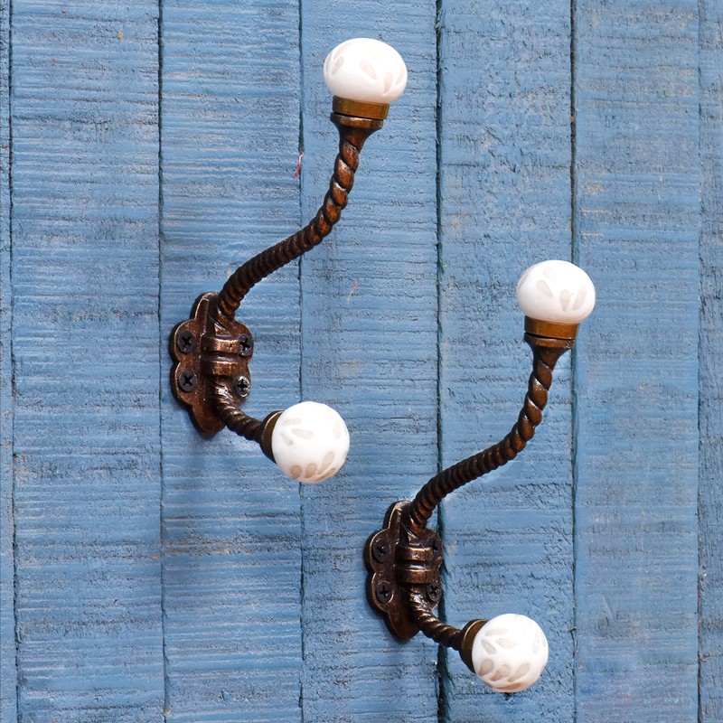 IndianShelf 2 Packs Decorative Coat Hooks Unique Wall Hooks Kids Iron Coat Rack Wall Mounted White Towel Holder Simple Hangers