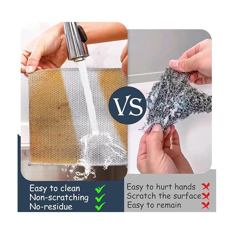 - Versatile Performance: Whether it's tackling tough grease or gently cleaning fine china, these multipurpose wire dish cloths are up to the task, suitable for both wet and dry cleaning.