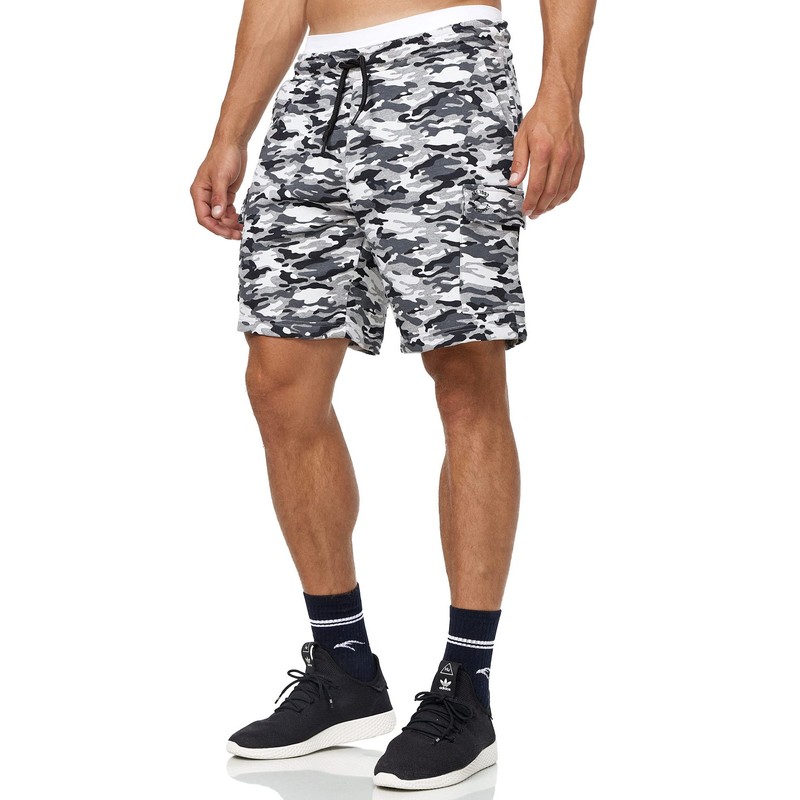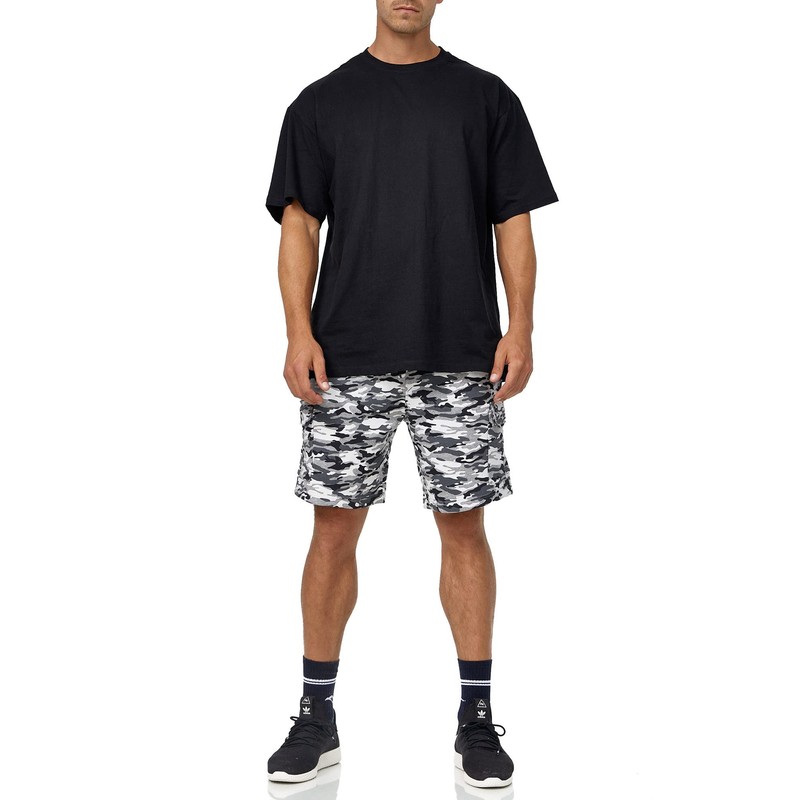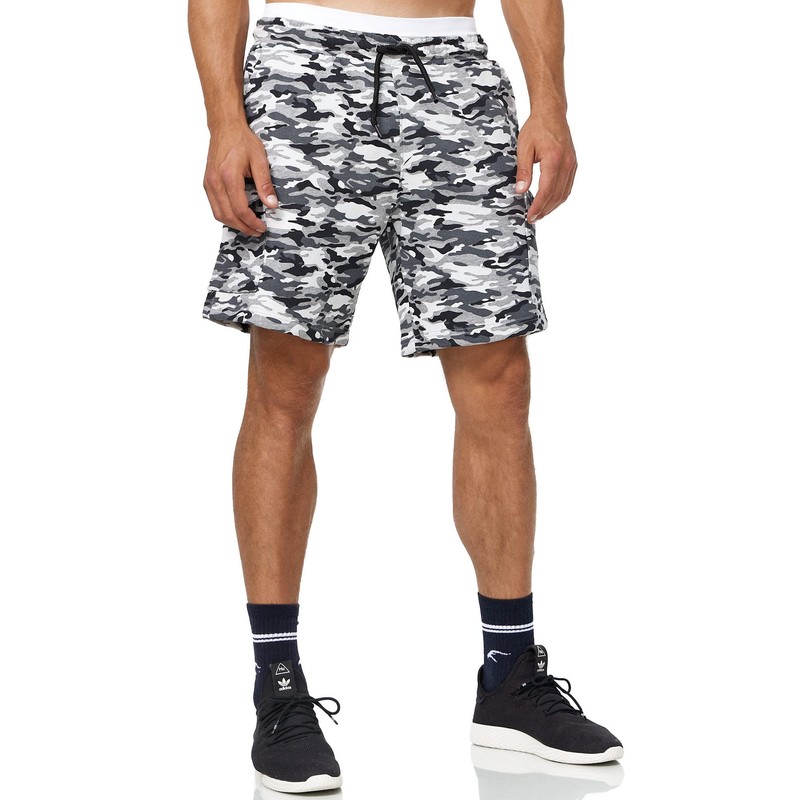 Indicode Men's Dannie Cargo Sweat Shorts with Drawstring, Men's Shorts, Sports Tracksuit Bottoms, Black camouflage, XL
