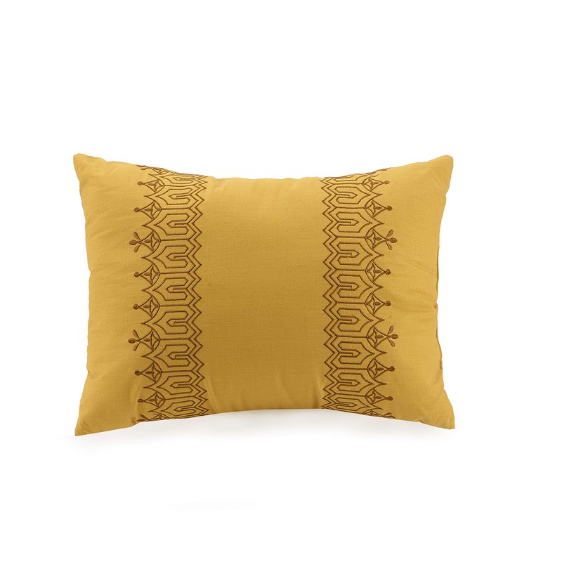 • Create a landscape of beautiful colored tones of yellow. Combined into a authentic indian inspired print. Surrounded with an ornate looking border filled with fine printed details. Along with the comforter set is two decorative pillows with beautiful detailed embroidery.