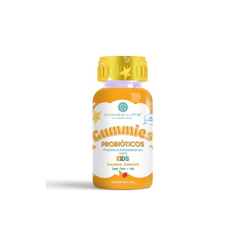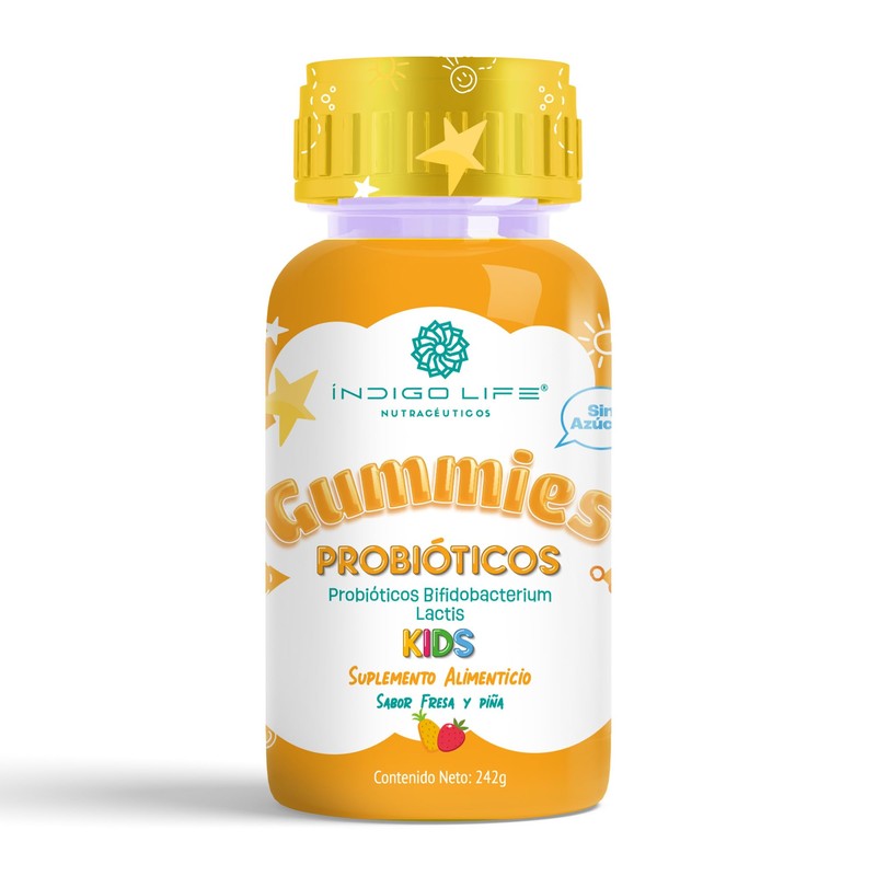 - Gummies Kids Probioticos Bifidobacterium Lactis Sabor Fresa y Piña 242 gr Indigo Life