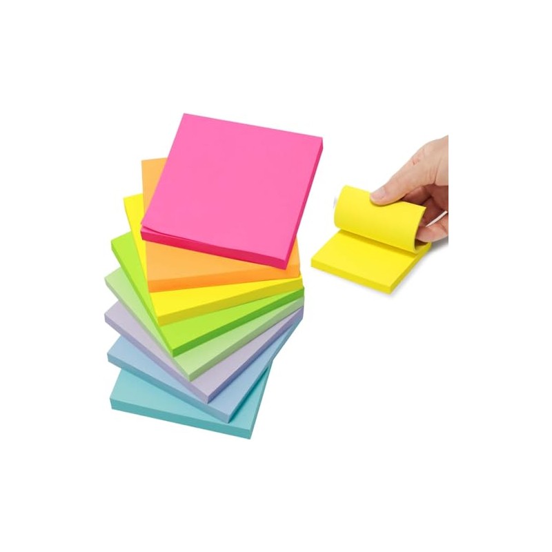 Large Sticky Notes, 76 x 76 mm 6 Brilliant Colors Assorted Self-Stick Pads for Notebook, Office, School and Home,100 Sheets/Pad
