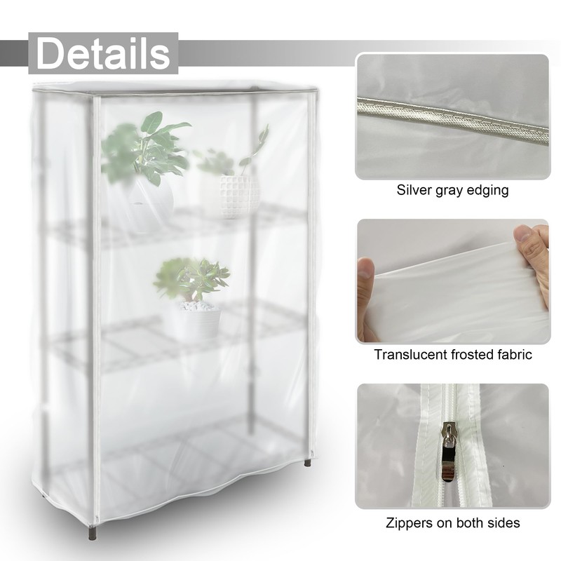 • Size:36" W x 18" D x 72" H. Say goodbye to the monotonous black and gray wire racks and welcome a fresh and sophisticated upgrade. Our translucent frosted PVC shelf cover adds a touch of beauty and elegance to your wire shelving, instantly elevating the overall aesthetic of your space.