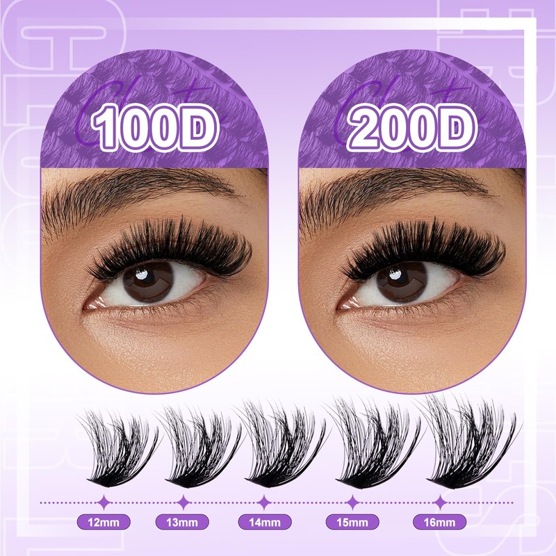 Individual Cluster Lashes D Curl Lash Clusters Effect Mixed Natural Eyelash Clusters Soft Cluster Eyelash Extensions Cluster Lashes Mink DIY Individual Eyelashes Cluster(100D+200D-3D-1216Mixed)