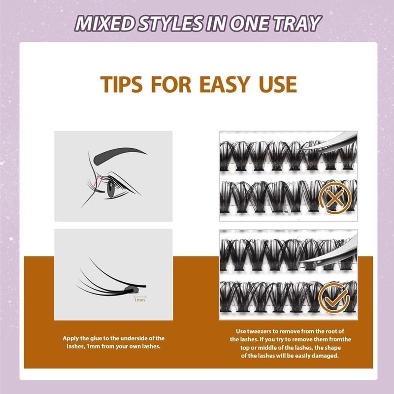 - 一【Affordable Luxury】:Enjoy the results of professional eyelash extensions without the salon fees.Fluffy individual cluster eyelashes help you emphasize the glamour of eye makeup at dinners and dances