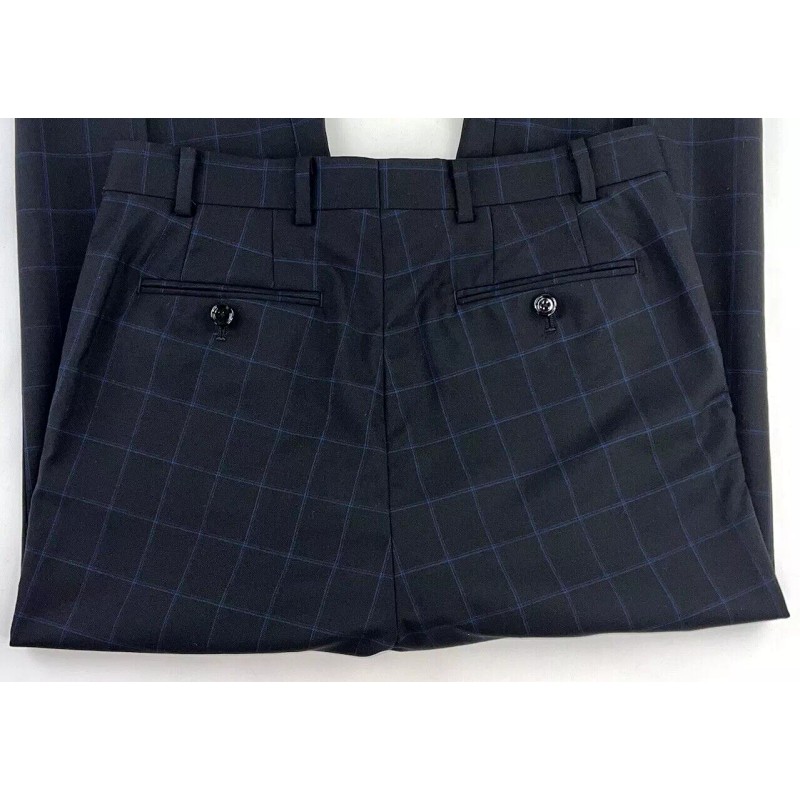 Indochino New INDOCHINO Mens Dress Pants Trousers 29x35.5 Black Blue Wool Windowpane 159$