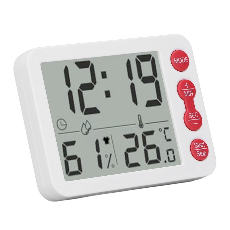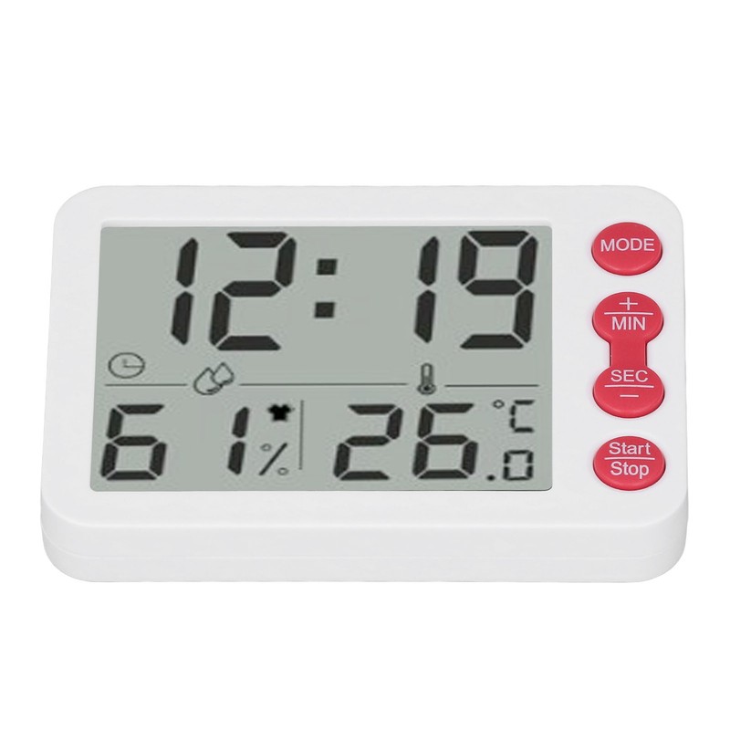 Indoor Digital Temperature Humidity Meter Multifunctional Electronic Thermometer Hygrometer with Alarm Clock Function White Red Key