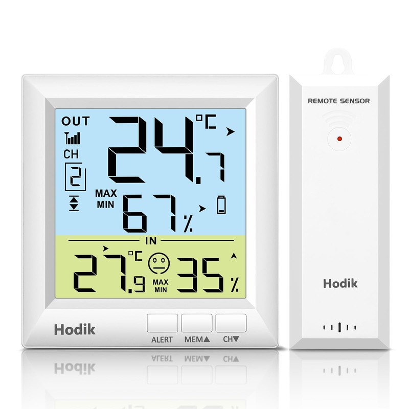 - 【330FT/100M Monitoring Range】: HODIK indoor outdoor thermometer has advanced wireless patented technology that enables more stable and reliable data transmission. 330FT transmission range and updated data every 30 seconds.
