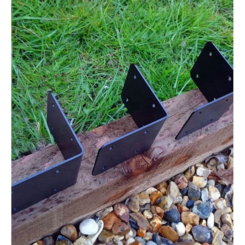 Our brackets provide a quick and very easy system for mounting and joining railway sleepers for garden construction work. Our unique design is cheap, quick to install, and works with all sizes of timber railway sleepers. These brackets are a quick and easy system for mounting railway sleepers as driveway or pathway edging or straight edges, as well as building raised beds and planters, securing retaining walls and border edging, and many other simple constructions.