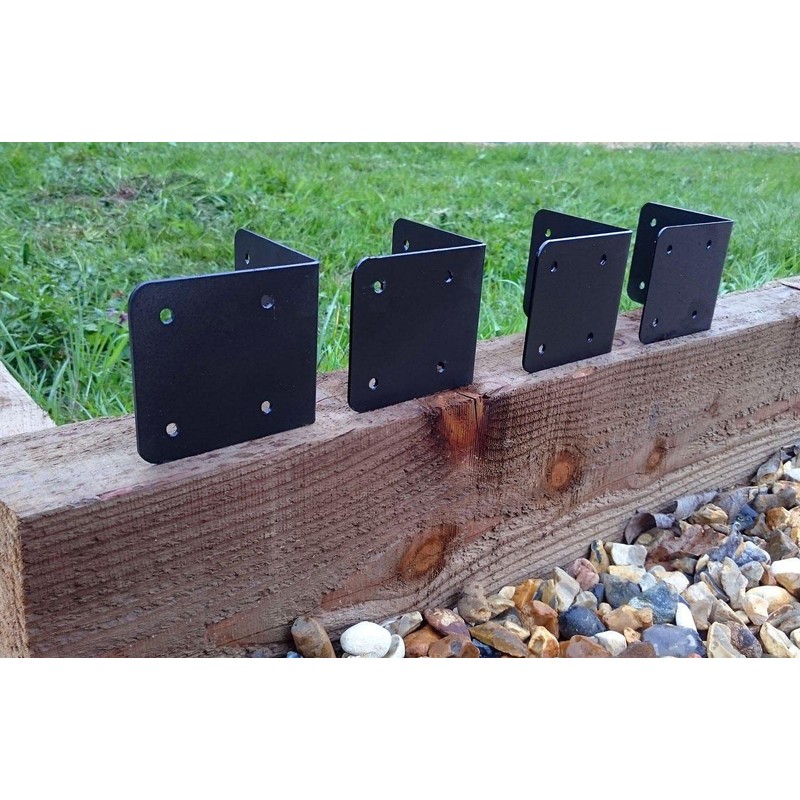 Indoor Outdoors SleeperFit Extra Strong 4 X Timber Railway Sleeper Corner Brackets for Raised Beds, Double Height Driveway Edging, Wooden Planters and Retaining Walls (Black)