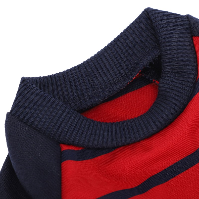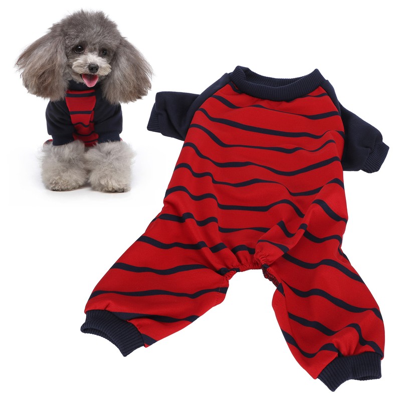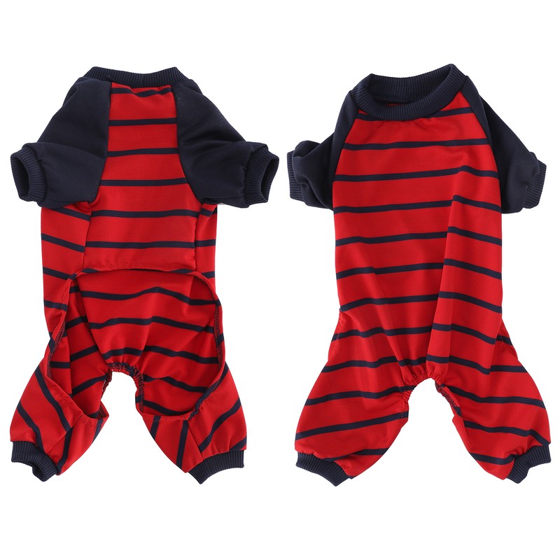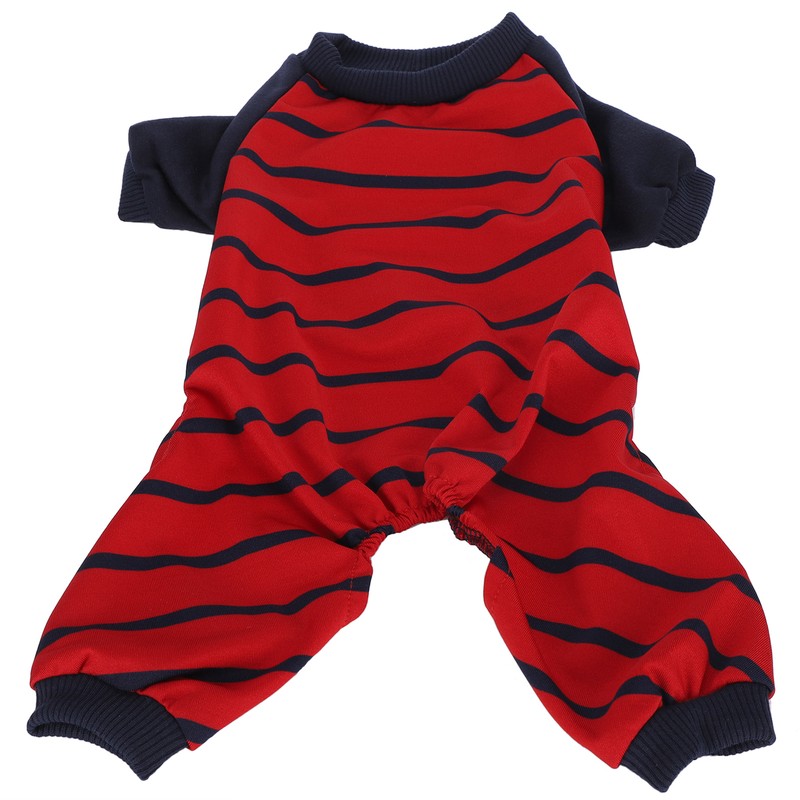 Indoor Pet Dog Jumpsuit Soft Clothes Polyester Dogs Bodysuits Long Sleeve Stripe ShirtSY60 Red Contrast Color M