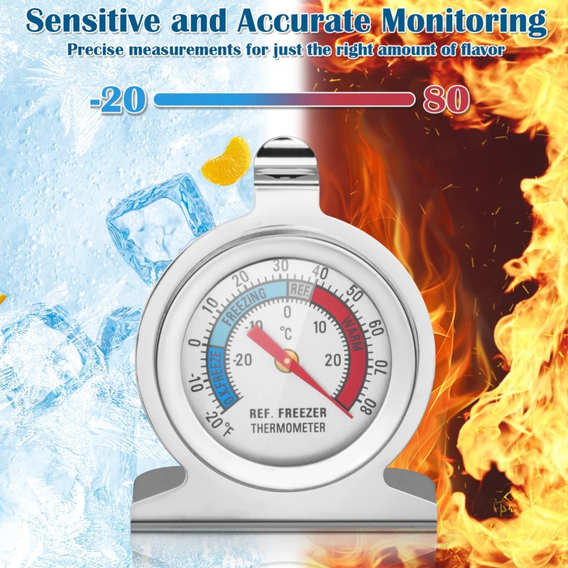 - 【 Freezer Thermometer】:Indoor Thermometer feature glass lens of the thermometer clock, Color block prompt, and clear scales make reading easier.